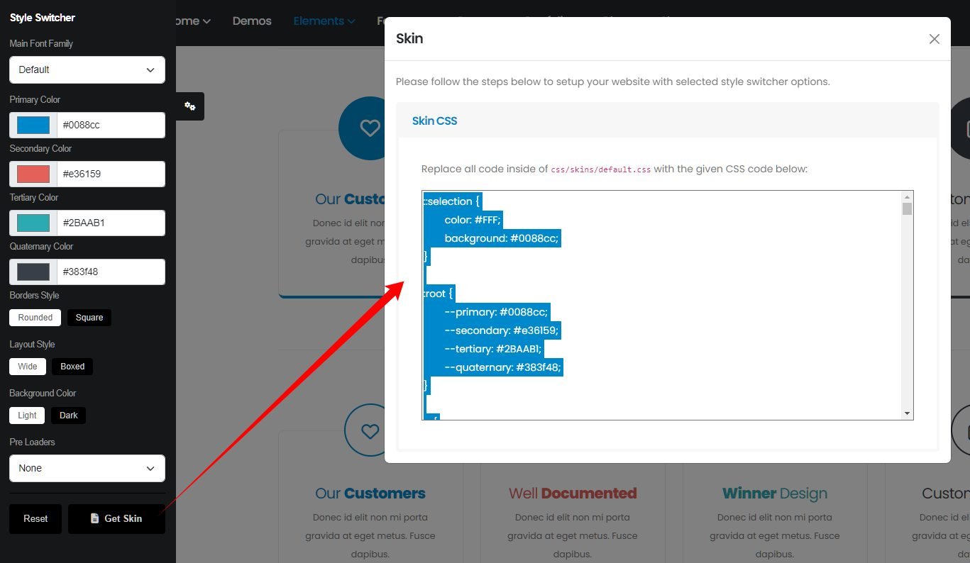 theme.css- (The basic layout structure styles)theme-elements.css- (Elements such as sliders, boxes, titles, etc...)theme-shop.css- (Shop Pages styles)theme-blog.css(Blog Pages styles)-