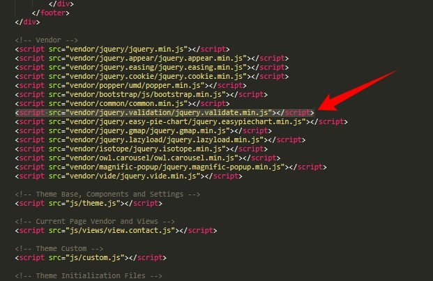 6) Add the script "view.contact.js" on footer of document. Like the image below: