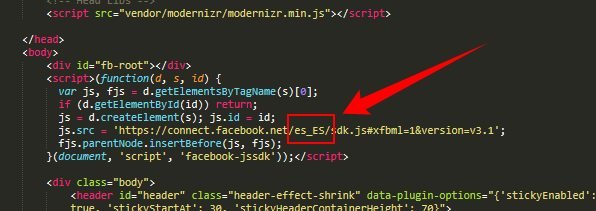 By default the language defined is English (en_US). To change the language just modify the language code on the facebook script at top of page (after the <body> tag).