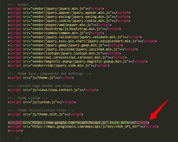 7) Add the script of Google Recaptcha on footer of document. Like the image below: