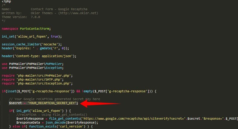 8) In php/contact-form-recaptcha-v2.php change the value of variable $secret to your generated Google Recaptcha Secret Key