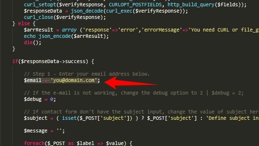 9) In php/contact-form-recaptcha-v2.php change the value of variable $email to your email (the email that will receive contacts)